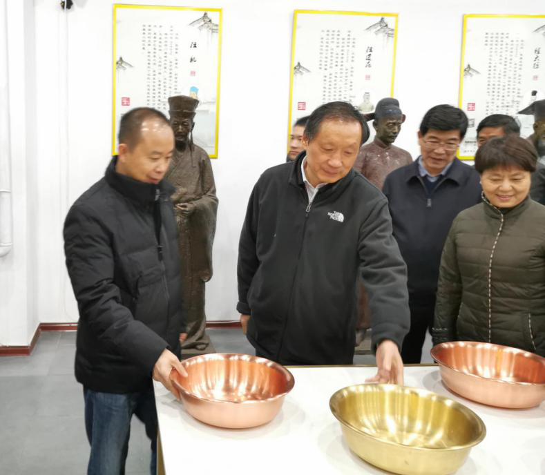 2019年11月26日下午,國家文化和旅游部黨組副書記、副部長李金早一行在副省長王翠鳳、市委書記李猛陪同下到銅官府視察指導(dǎo)。趙敏向李部長一行匯報(bào)了銅文化產(chǎn)業(yè)的經(jīng)營思路和技術(shù)創(chuàng)新工作,李部長希望銅官府進(jìn)一步開發(fā)銅工藝,讓銅藝走進(jìn)百姓生活。