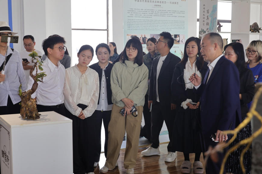作為展示銅陵銅文化的重要窗口,銅官府深耕銅文化傳承與創(chuàng)新?;顒又校~官府董事長趙敏全程陪同講解,帶領(lǐng)采風(fēng)團(tuán)參觀了特色文化園區(qū)、非遺展示廳及大師工作室。